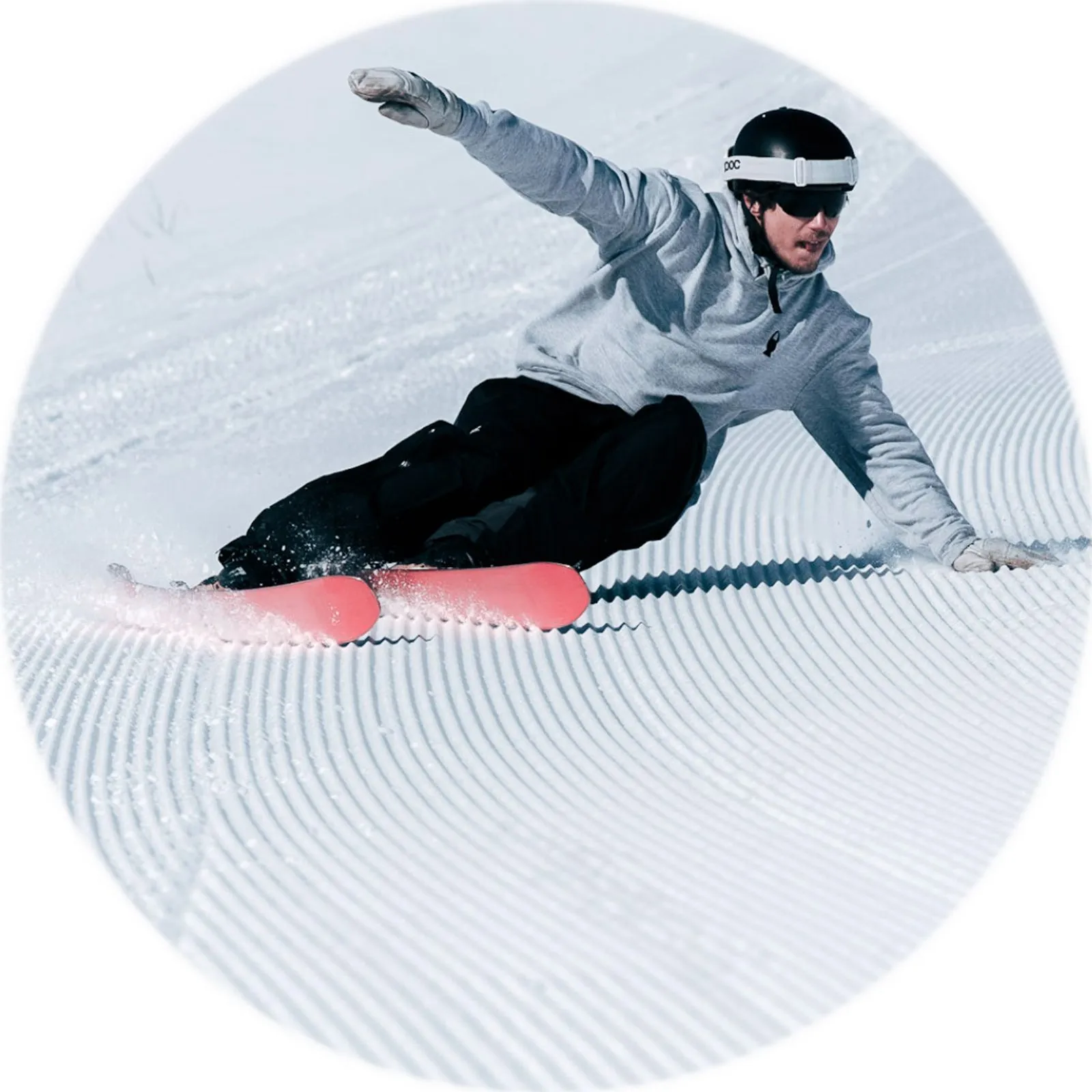 He had been alpine skiing for a big part of his life. It went fast, and that equaled fun. But that fun part started to wither with all of the rules. “You have to optimize your stance. It’s too narrow, widen it.” The coach would say. He quit, but the carve never left. As he became a professional freeskier his Achilles heel in alpine skiing is now what makes a big part of his style. Short and snappy or smooth and long strokes down the mountain. Narrow or wide stance. He let nothing get between him and the groomer, and you shouldn't either.