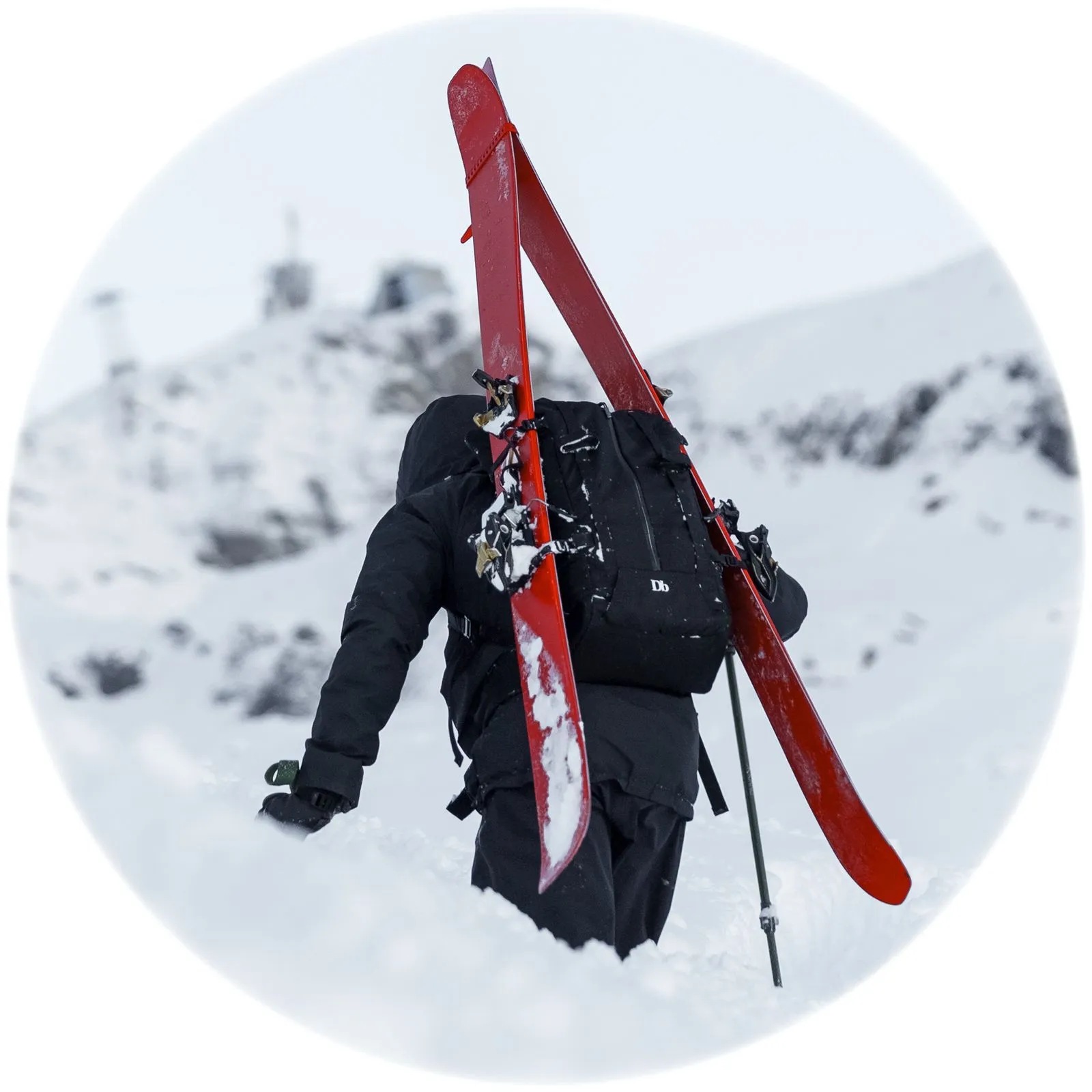 We encourage people to find their own favorite mounting spot and be free to do as they like. However, if you have no idea what you like, we can tell you that our whole team mounts their Powder skis at -2.5 to -5cm back from center. It really creates a well-balanced experience.