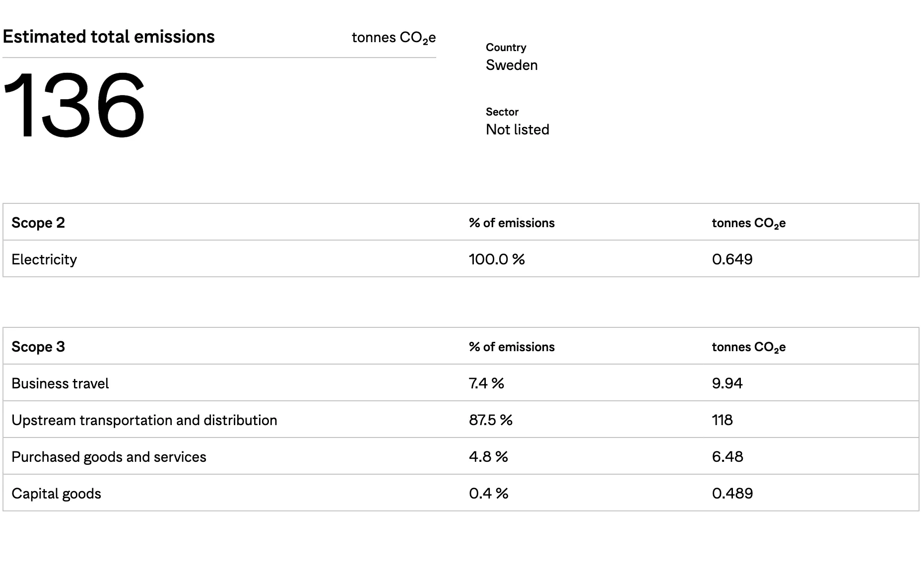As you can see from the graph above, the largest contributor to our carbon emissions is upstream transportation and distribution. Meaning the way we ship our products to customers, namely through air freight, is driving 87.5%. This is an area where huge improvement can be made for us and we are continually looking into less emission transportation such as ocean freight.